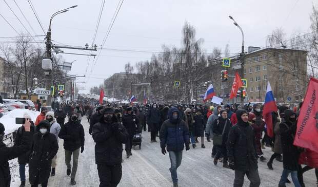 Несанкционированная акция протеста прошла 23 января в Ижевске. Участники акции, несмотря на требования полиции, вышли на проезжую часть улицы Пушкинской напротив здания правительства Удмуртии и прошли маршем по улицам Пушкинская, Советская, Коммунаров, вернувшись затем на Пушкинскую и пройдя до здания администрации г. Ижевска.